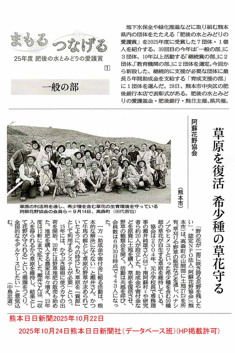 ←(P) 2024/11/23 認定NPO法人阿蘇花野協会設立20周年記念パーティ